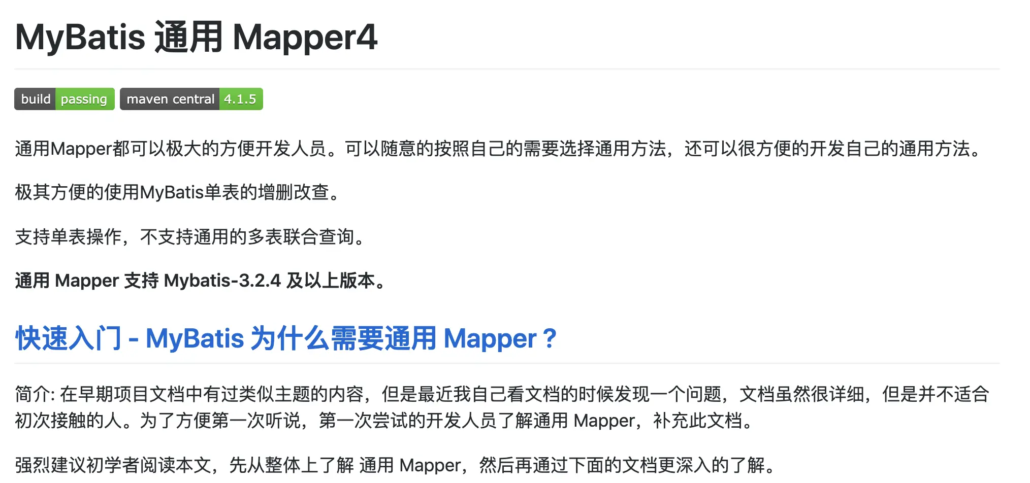 4.0 之后,增加了一个 @RegisterMapper 注解,通用 Mapper 中提供的所有接口都有这个注解,有了该注解后,通用 Mapper 会自动解析所有的接口,如果父接口(递归向上找到的最顶层)存在标记该注解的接口,就会自动注册上。因此 4.0 后使用通用 Mapper 提供的方法时,不需要再配置这个参数。