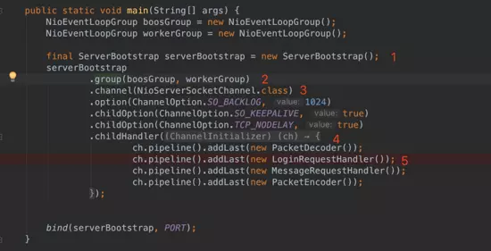 (1)创建两个NioEventLoopGroup,用于逻辑隔离NIO Acceptor和NIO I/O线程
