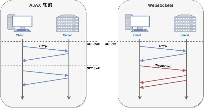 WebSocket 使得客户端和服务器之间的数据交换变得更加简单,允许服务端主动向客户端推送数据。在 WebSocket API 中,浏览器和服务器只需要完成一次握手,两者之间就直接可以创建持久性的连接,并进行双向数据传输。