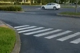 自动驾驶中的车辆,准备从停车位过来,但遇到人类驾驶的这辆白车的时候,就踟蹰不前,不知道该走还是不该走,慢悠悠的前进几步,又退后。