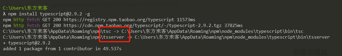 首先安装ts,这里指定了版本是为了避免不同版本的差异,影响学习进度。