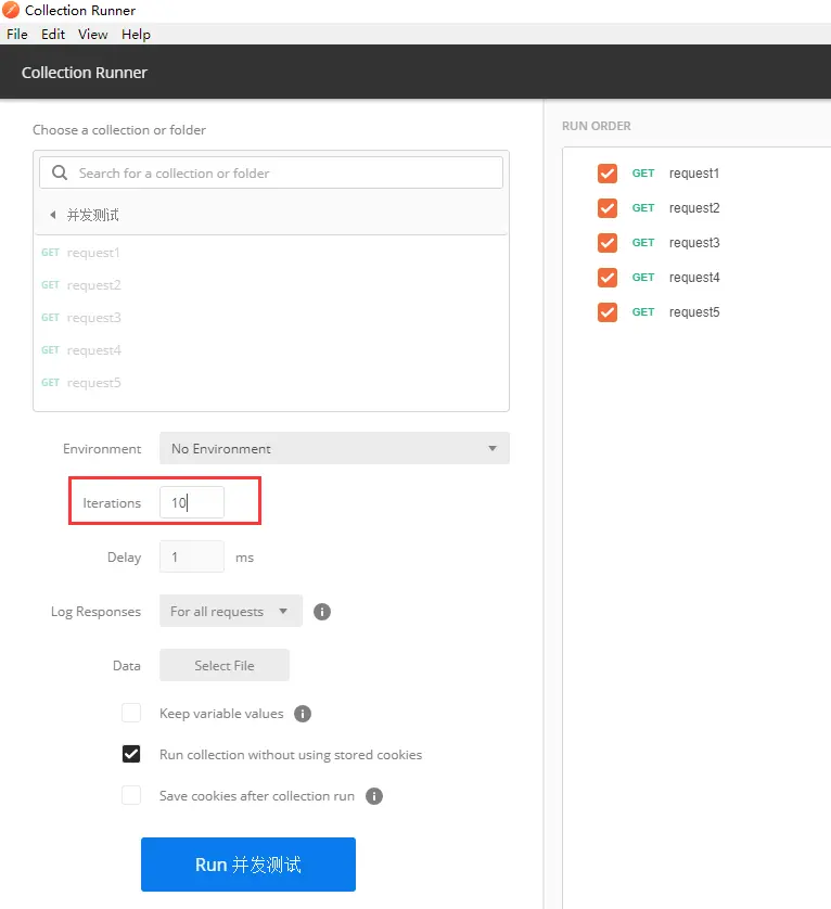 2.通过postman设置了并发测试也还是串行的,即便设置了并发数,如下图: