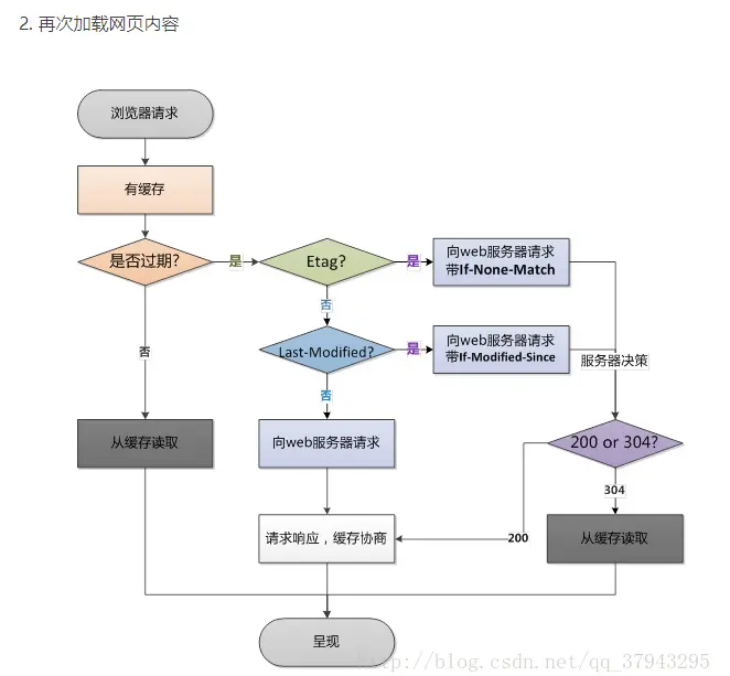 2,协商缓存是在第一次请求时,服务器返回的响应头中不存在Expires与Cache-Control或者过期时,浏览器第二次请求时就会与服务器进行协商,如果缓存与服务器资源的最新版本一致,无需下载服务端直接返回304 Not Modified状态码,如果服务器发现浏览器中的缓存已经是旧版本了,那么服务器就会把最新资源的完整内容返回给浏览器,状态码就是200 Ok。