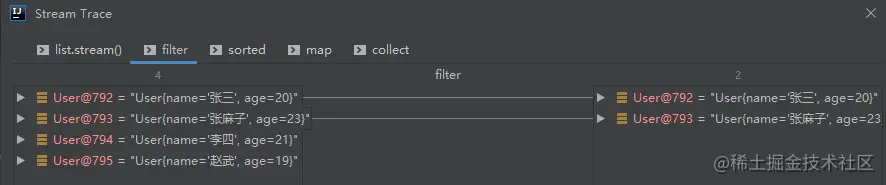 这个过程我们可以使用Java Stream Debugger插件来查看: