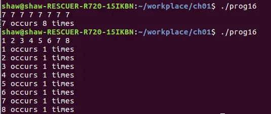练习1.18:编译并运行本节程序,给它输入全相等的值。再次运行程序,输入没有重复的值。