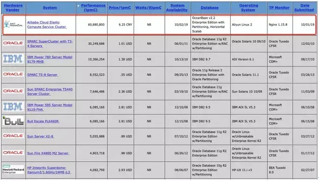 数据库的核心能力包括性能、成本、功能、生态等等,而 TPC-C 是全球 OLTP 数据库最权威的性能测试基准。TPC-C 登顶是每个 OLTP 数据库厂商的梦想,登顶意味着具备世界级的事务处理能力,能够满足无论是互联网还是金融、电信、政府等关键领域的核心系统的事务处理需求。目前在 TPC-C 指标上,蚂蚁金服是唯一一家中国上榜企业。
