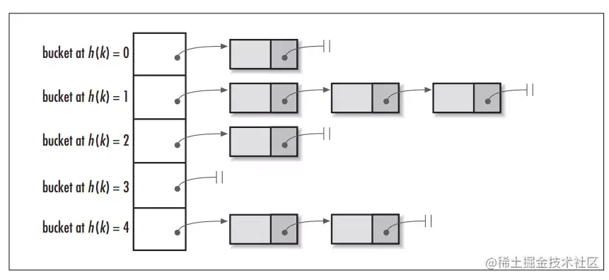 如果碰撞了,以链表的形式存在buckets后;