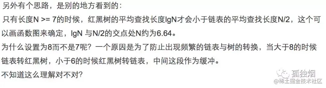 2)为什么链表转红黑树的阈值是8?那为什么转回链表节点是用的6而不是复用8?