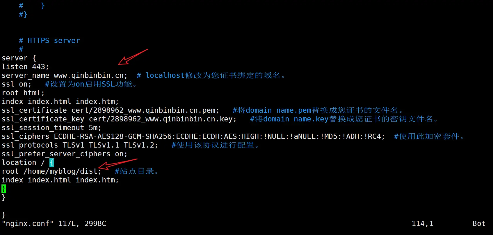 阿里云申请的免费证书,审核通过后下载下来,照着文档配置,不过还是会遇到挫折的。如下这个