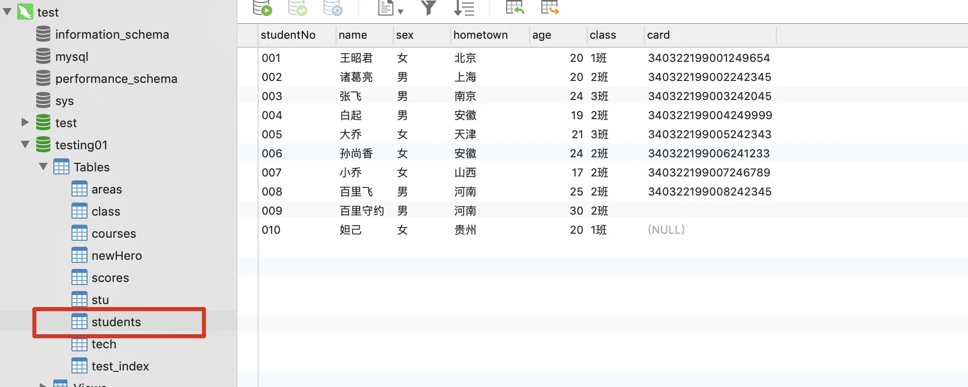 以本地的数据库为例: