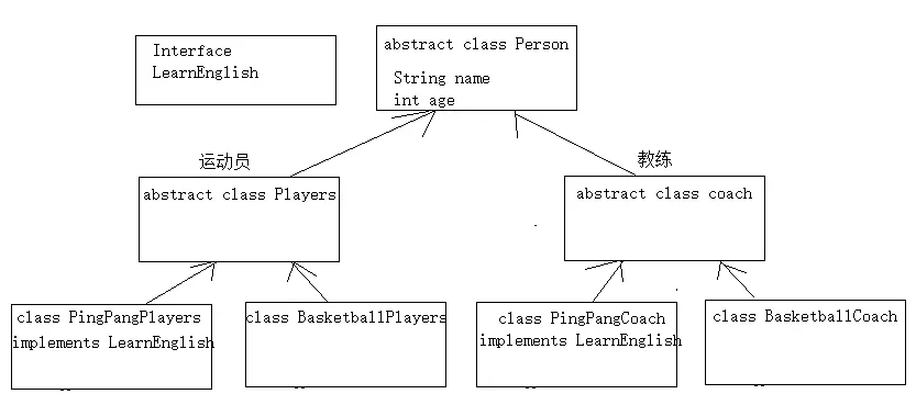 * 为了出国比赛,乒乓球相关人员要学英语,设计类和接口。