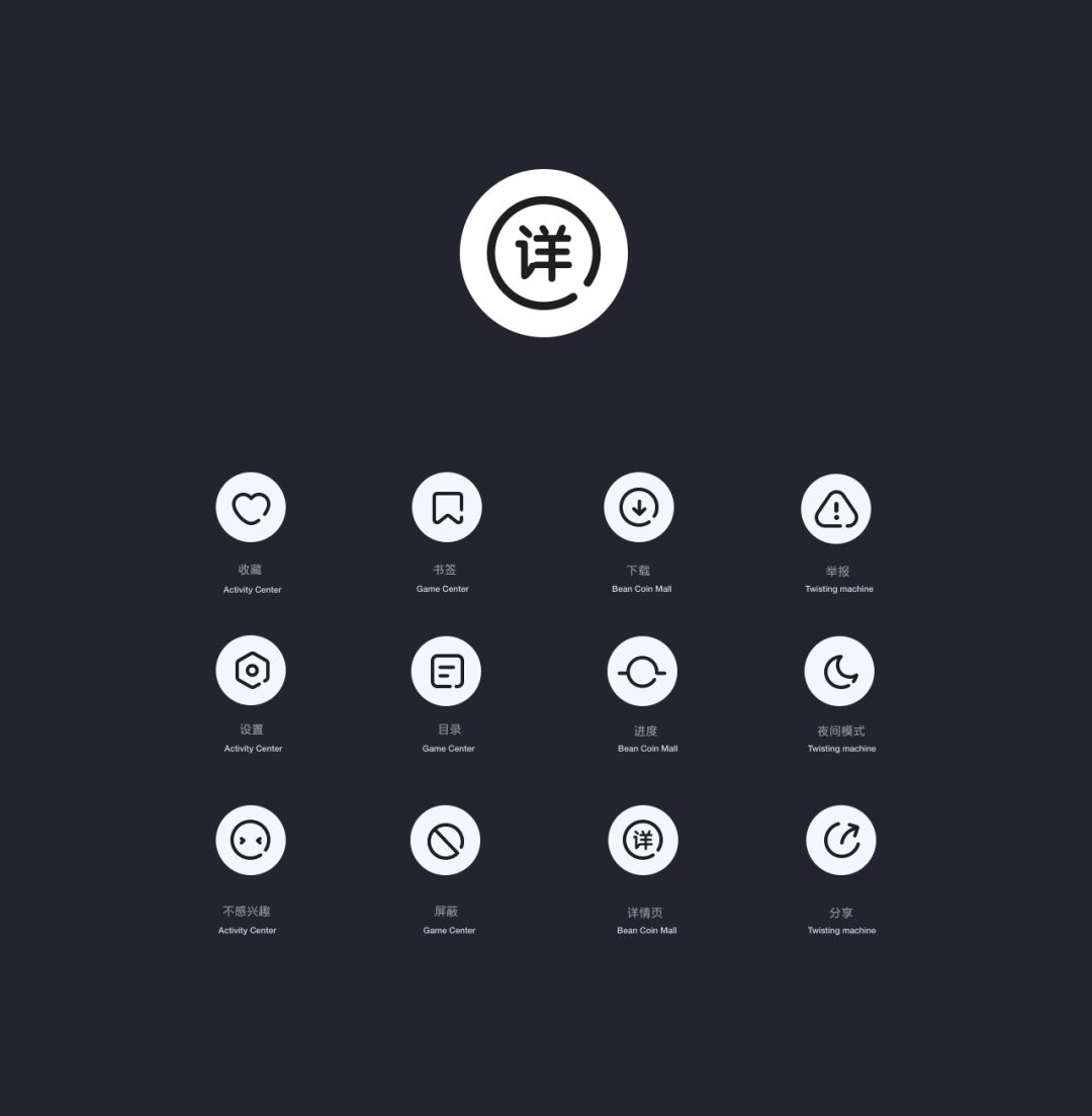 由于这个图标没有文案搭配使用,所以在含义识别上一定要重视,最后的方案就是采用一个详字来进行设计,既满足了识别,又满足了统一的形式: