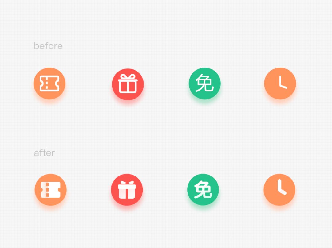 所以在这样的理论与数据的支撑下,去年我对部分图标进行了如下改版: