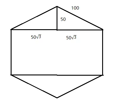 /* 根据勾股定理算出来左边和右边的边长是100√3的长度 */