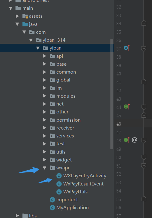 建WXPayEntryActivity类,目录结构示例如下: