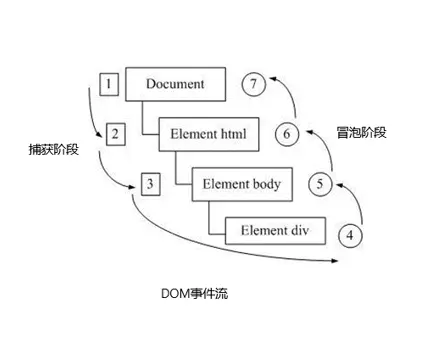 事件捕获: 网景最早提出,由 DOM 最顶层节点开始,然后逐级向下传播到到最具体的元素接收的过程。