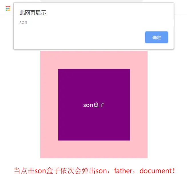 // 冒泡阶段:如果addEventListener第三个参数是 false 或者省略那么则处于冒泡阶段 son -> father ->body -> html -> document