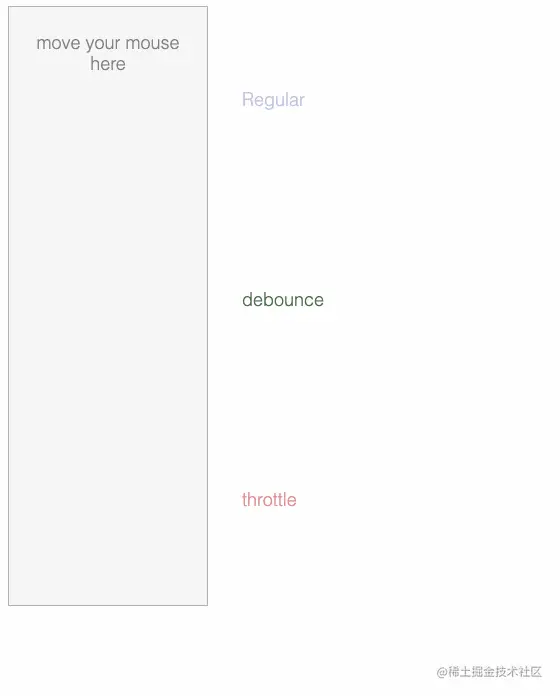 防抖debounce原理:如果用手指一直按住一个弹簧,它将不会弹起直到你松手为止。你尽管触发事件,但是我一定在事件触发n秒后才执行,如果你在一个事件触发的n秒内又触发了这个事件,那我就以新的事件的时间为准,n 秒后才执行,总之,就是要等你触发完事件n秒内不再触发事件,我才执行,真是任性呐!
