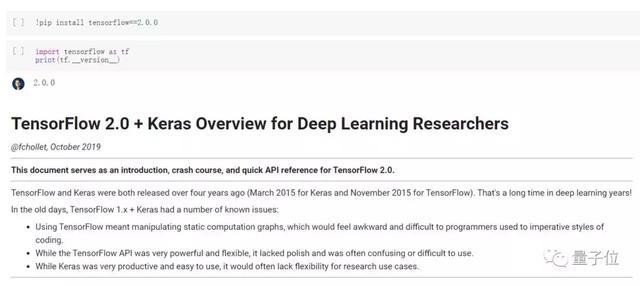 前几天,TensorFlow 2.0正式发布。如果你对新的深度学习框架还不熟悉,推荐看看这篇集简介、速成课程、API速查参考为一体的Overview。