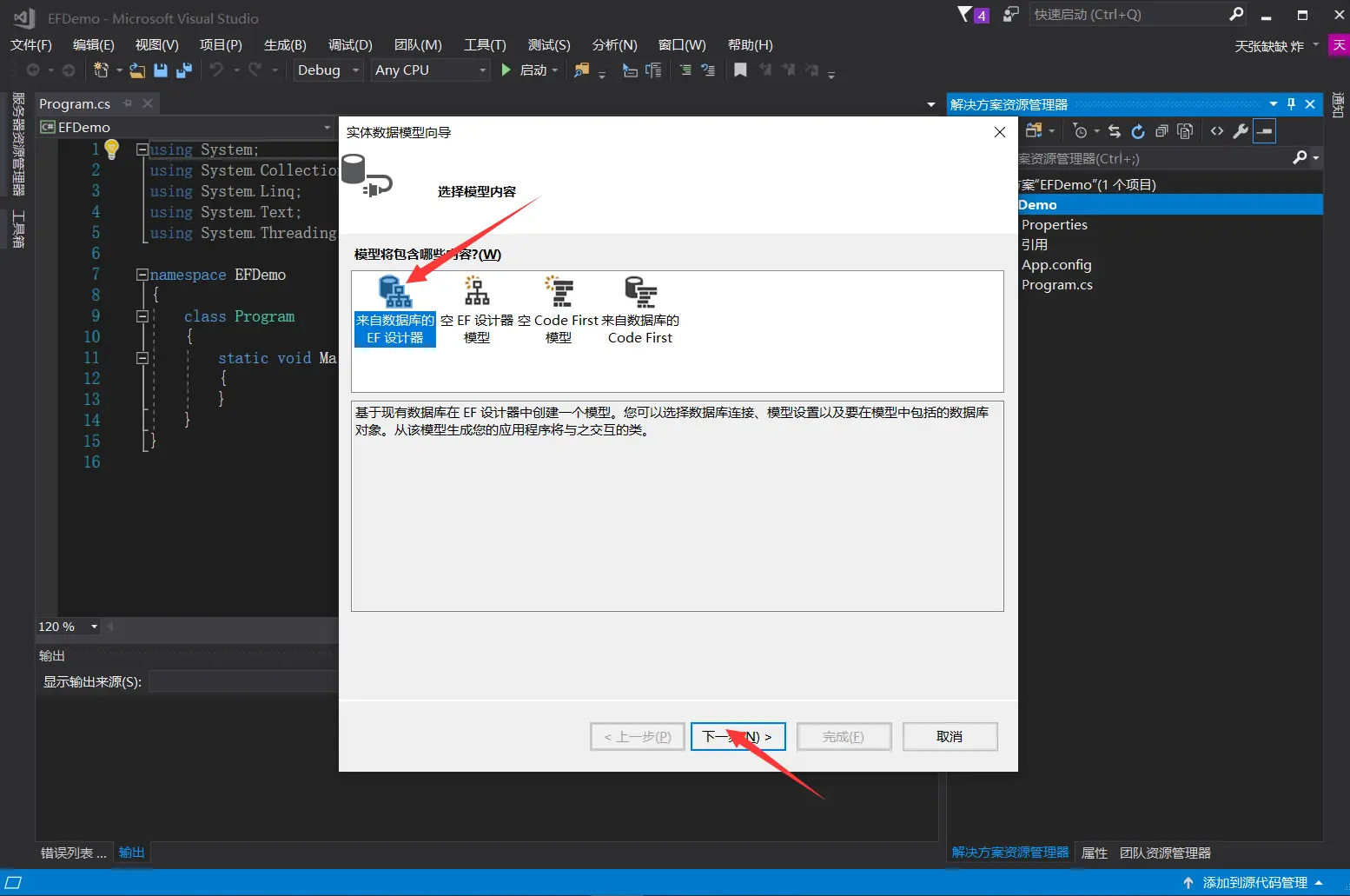 - 第二步,选择Database First模式,数据库优先