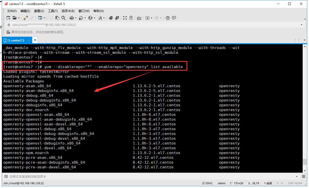 sudo yum --disablerepo="*" --enablerepo="openresty" list available