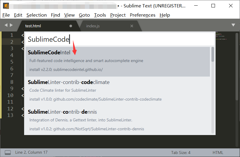 2,其次,在包安装界面,输入SublimeCode,选择SublimeCodeIntel,回车