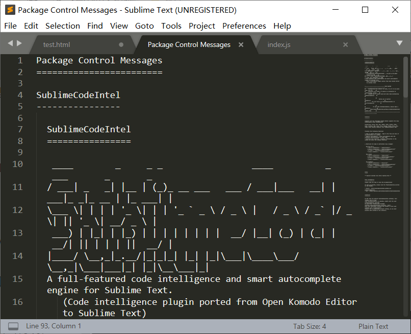3,安装完成后,将自动打开文件 Package Control Messages