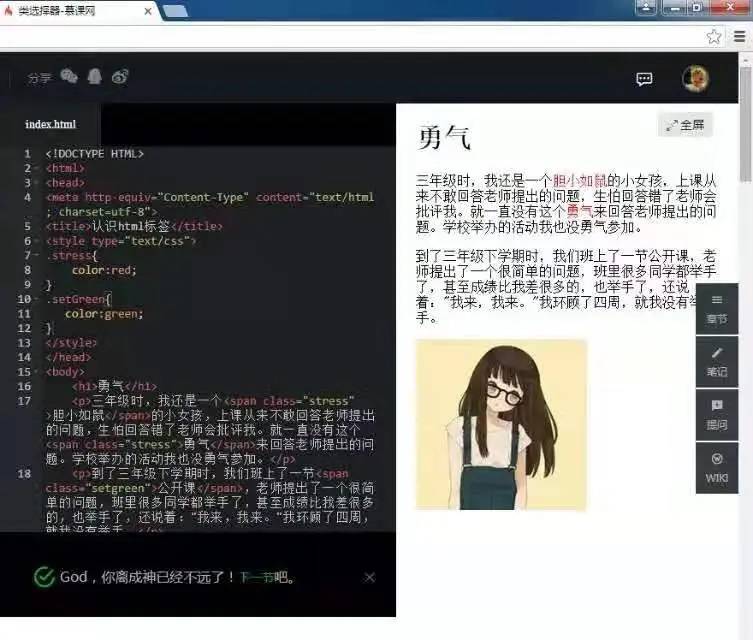 还好,大二下学期开了网站制作的课程,这仿佛让我在迷茫中找到了一点点方向。附上一张初次接触前端代码的图