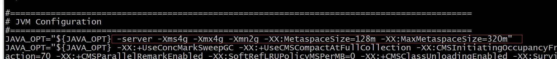 JAVA_OPT="${JAVA_OPT} -server -Xms256m -Xmx256m -Xmn125m -XX:MetaspaceSize=128m -XX:MaxMetaspaceSize=320m"