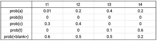 · 选择一个候选字符串,将字符一个一个添加进去。计算拓展后的字符串在时刻1以空白标记和非空白标记结束的概率。将拓展字符串及其概率记录到列表中。将拓展字符串作为新的候选字符串,在下一时刻重复上述步骤。