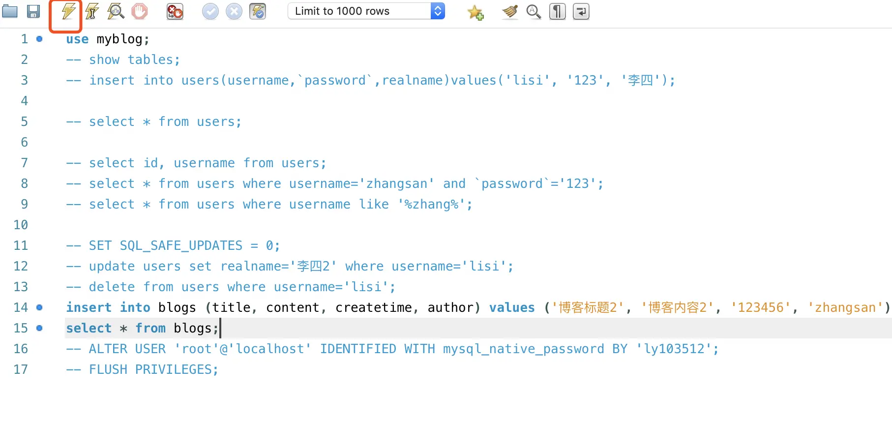 const sql = 'select * from blogs;'