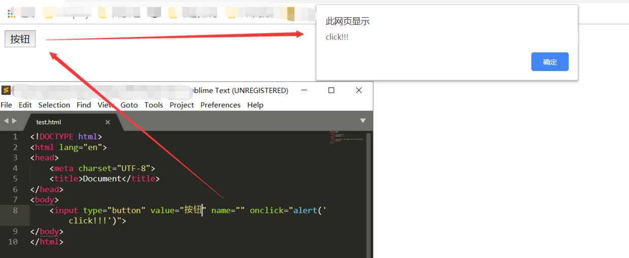 <input type="button" name="" onclick="alert('ok!');">