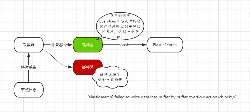 [elasticsearch] failed to write data into buffer by buffer overflow action=:block\n