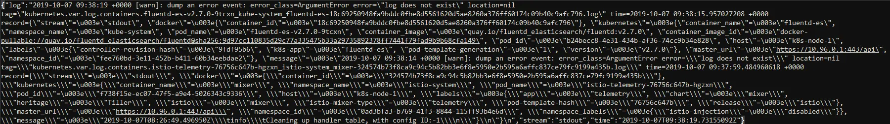 查看fluentd-es pod日志文件,有好多[warn]: