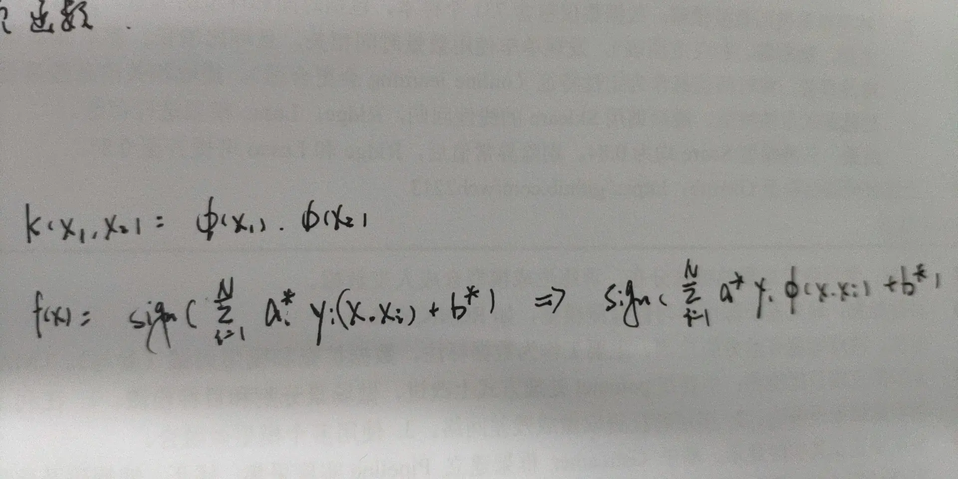 - 通过将输入空间内线性不可分的数据映射到一个高纬的特征空间内使得数据在特征空间内是可分的
