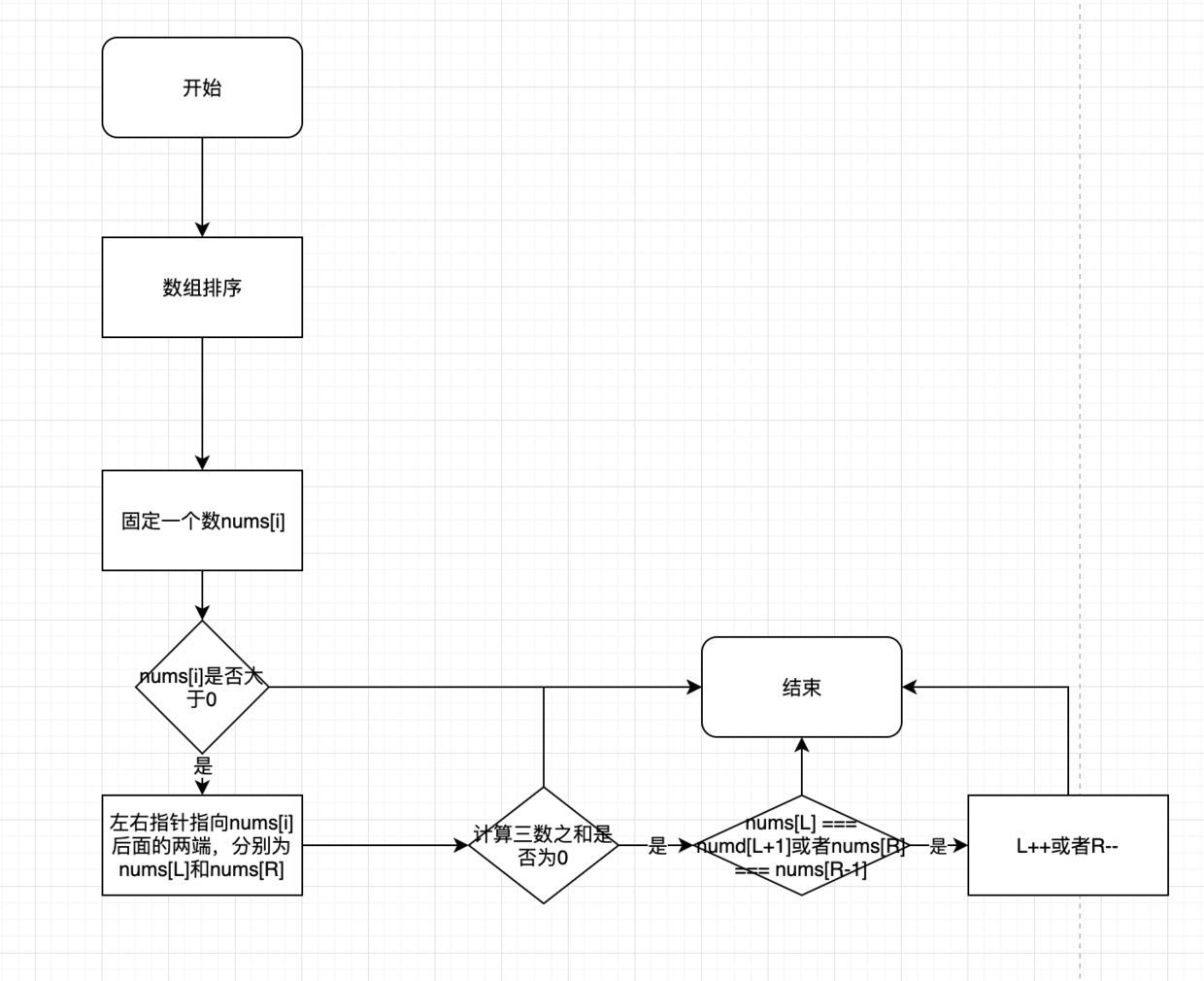 给定一个包含 n 个整数的数组 nums,判断 nums 中是否存在三个元素 a,b,c ,使得 a + b + c = 0 ?找出所有满足条件且不重复的三元组。