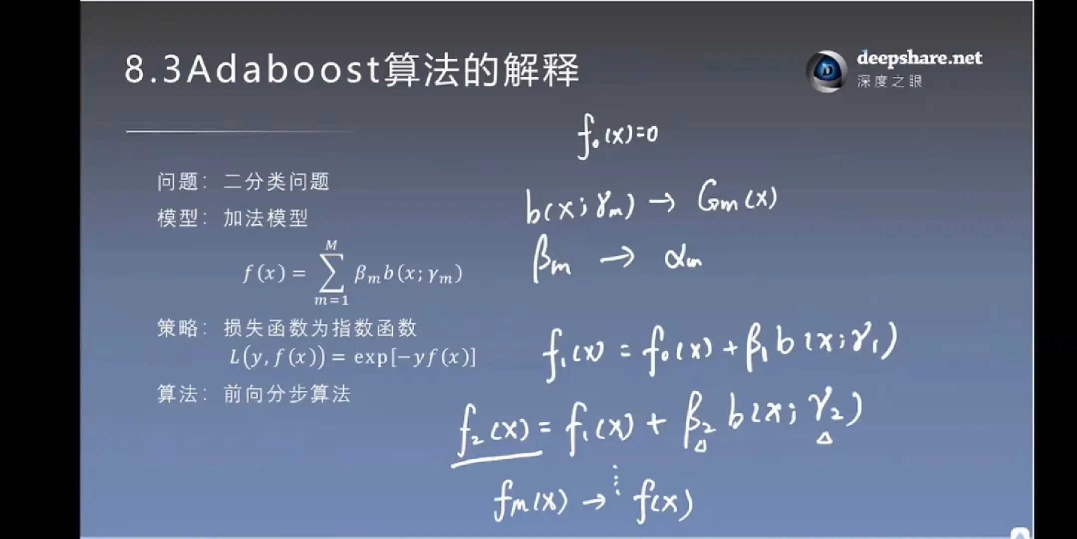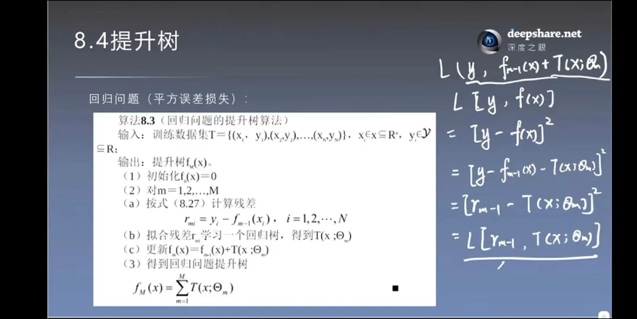 8.提升方法 海盐味橘色汽水 2019-10-07 279 阅读1分钟 AdaBoost提高前一轮弱分类器错误分类样本的权值使用加权多数表决,加大分类器误差率小的弱分类器的权值,使其在表决中起较大的作用一般AdaBoost的变形是改变策略(即损失函数)例子前向分布算法AdaBoost是前向分布加法算法的特例。这时,模型是由基本分类器组成的加法模型,损失函数是指数函数提升树和GBDT提升树分类:二叉分类树(指数损失函数);回归:二叉回归树(平方损失函数)。采用前向分布算法。分类回归树,相当于基本分类器(基函数)为决策树的AdaBoost算法。提升树算法即残差与平方误差损失的等价证明例子GBDT将最速下降作为残差的近似方法GBDT算法及最速下降可作为残差近似的证明计算出Rmj,Cmj需要代回去计算。由于示性函数,只需计算M项Cmj。