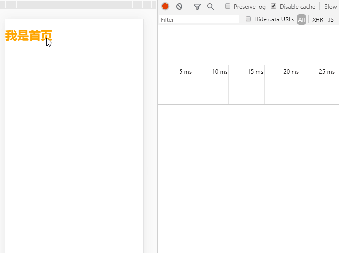 留意上图,当我点击“我是首页”的时候,是立刻出现骨架屏的,再看右边的js资源是正在加载,还没有加载完成。也就是说,它不是使用v-if或者v-show在“我是详情页面”的页面里面做的骨架屏。后者它有个限制,因为后者所谓的骨架屏也是属于“我是详情页面”的代码,必须等待js资源返回后才会显示。而前者则是加载js资源之前就已经显示了。 **