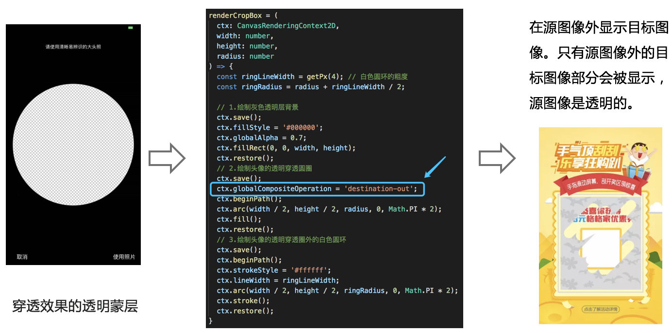 使用canvas的ctx.globalCompositeOperation='destination-out'实现。
