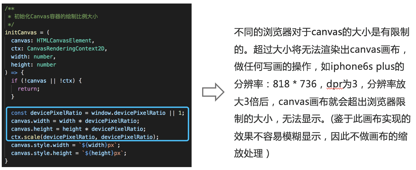 坑位1:在一些高分辨率的安卓机子上,绘制canvas图形会出现模糊的现象。因为canvas元素依赖于设备像素比,所以适配高清屏,canvas内容的宽高需要设置为实际的宽高的dpr倍。但是如果这么设置会导致画面空白一片,无法显示。