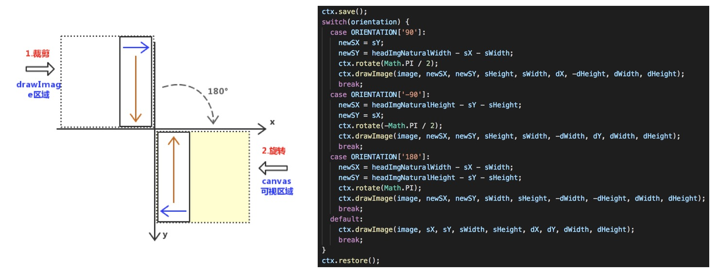 解决方法:引入一个exif.js的库,获取图片的orientation值,来对图片进行方向旋转的处理。在此只需要处理:1.顺时针旋转90°,2.逆时针旋转90°,3.顺时针旋转180°,三种情况。
