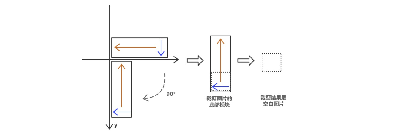 坑位6:裁剪经过旋转显示的宽度大于屏幕宽度的图片,往往会出现裁剪部分缺失或裁剪出空白的图片,但是裁剪的坐标和宽度经过推算是没有错。