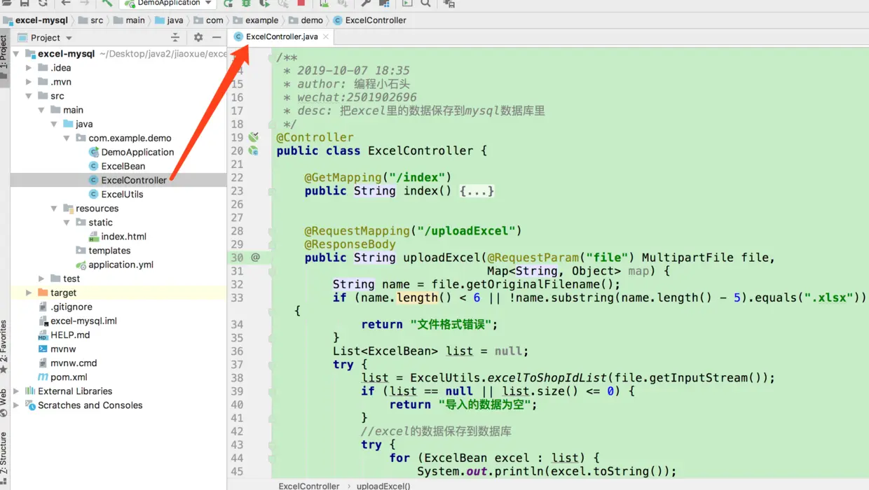 三,创建一个controller用于接收上传的excel文件