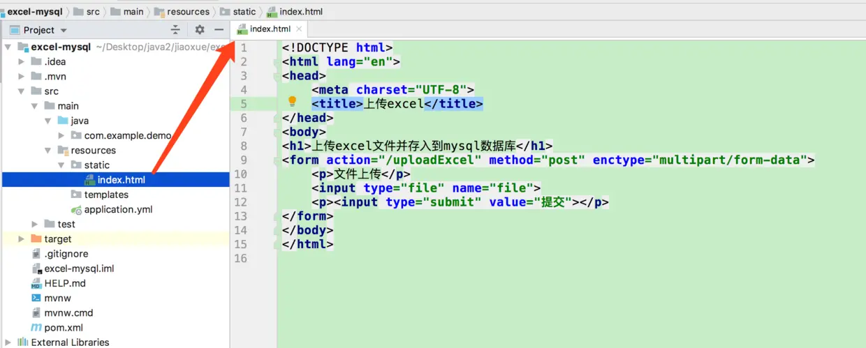 五,定义一个用于上传excel文件的html静态网页