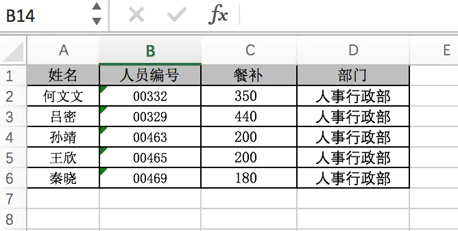 //列: 0姓名 1人员编号 2餐补 3部门