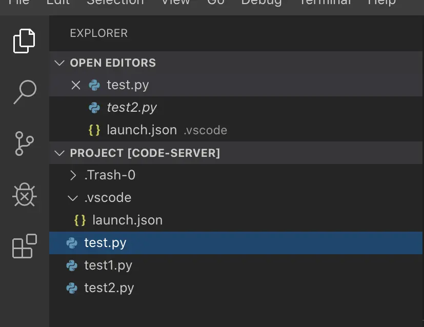 然后在 vscode 中加载一个文件夹作为项目目录(/home/coder/project),如图: