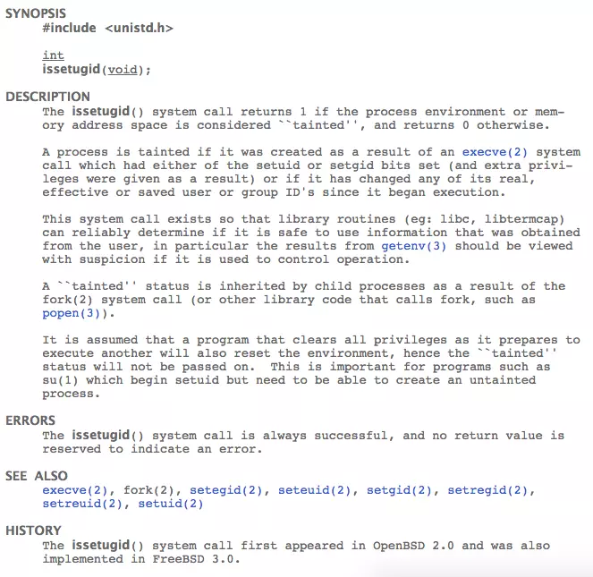 该方法在苹果API Reference中有介绍:issetugid,大概意思是判断当前App的uid或者gid有没有发生变化。这里返回的是NO,继续看后面的代码。issetugid