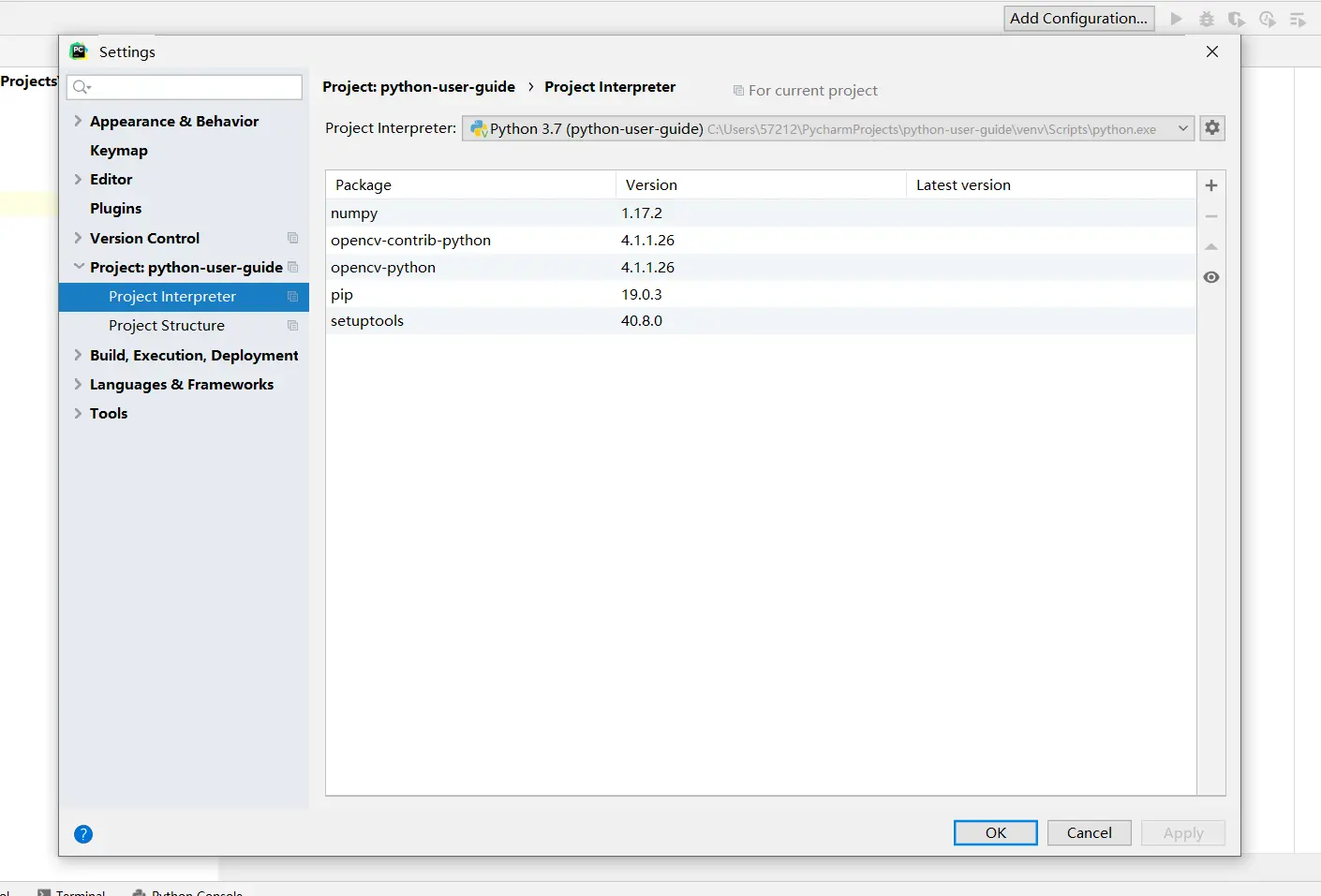 需要注意的是,在使用OpenCV时,需配套安装numpy库,这是因为opencv-python依赖于numpy进行矩阵数值处理。