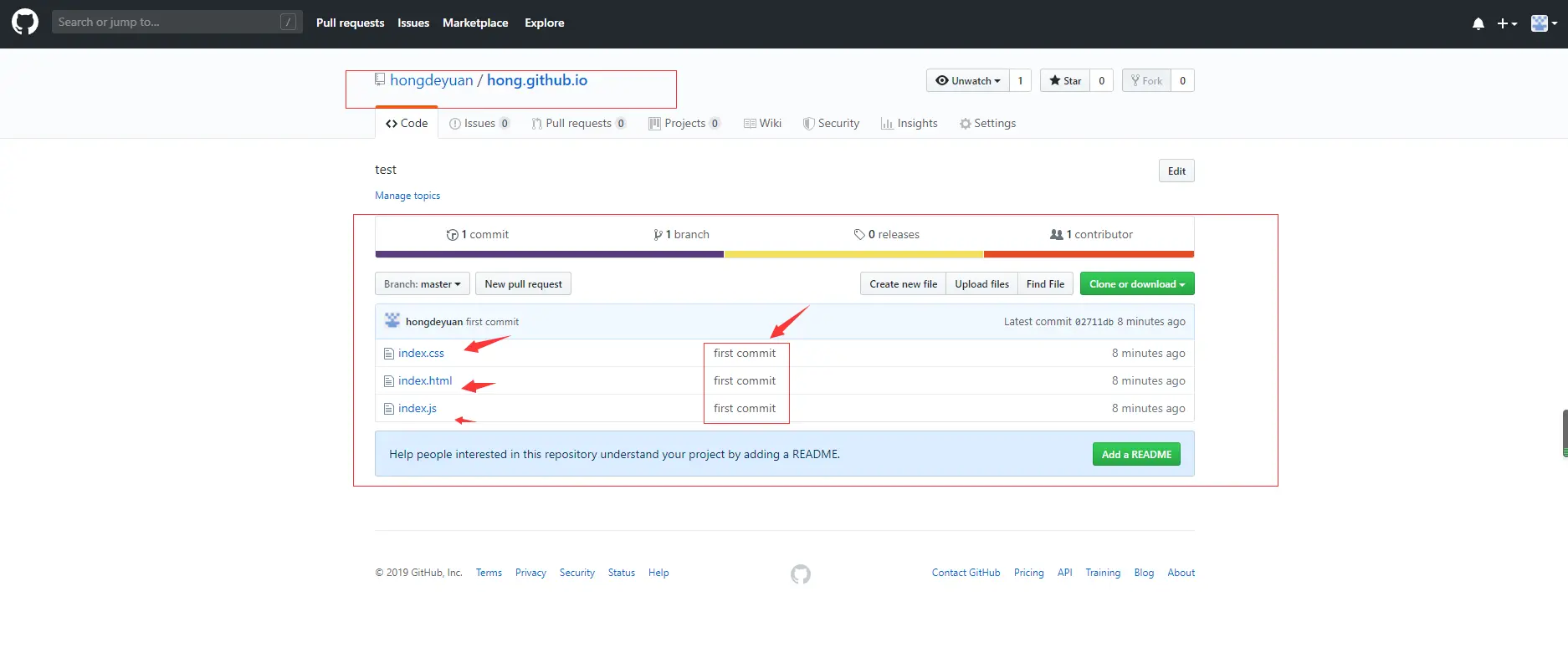 - 这个仓库名比较特殊,取名格式:用户名.github.io;例如:hongdeyuan.github.io