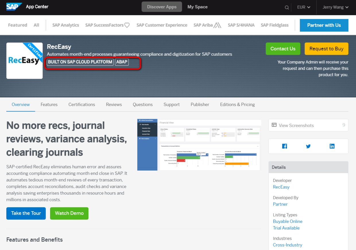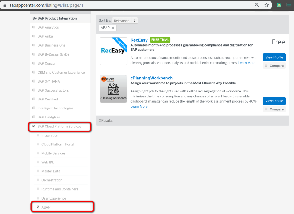 依次勾选左边的SAP Cloud Platform Services和ABAP,即可列出所有使用SAP Cloud Platform ABAP编程环境开发的partner解决方案。